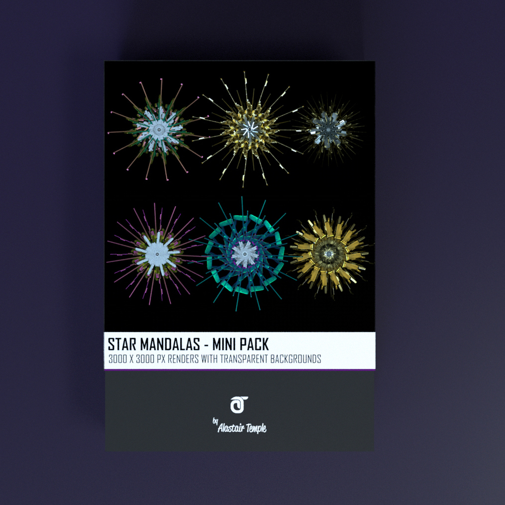 Star Mandala minipack containing 3 renders from each of the "Silver and Gold" and "Colours and Stone" sets. All on transparent backgrounds.